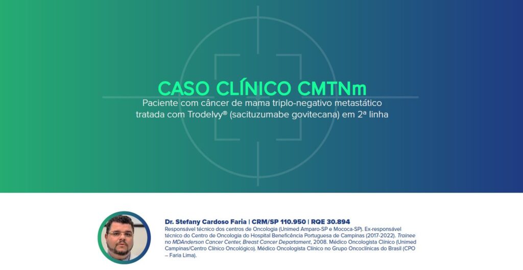 Paciente com câncer de mama triplo-negativo metastásico tratada com Trodelvi em 2ª linha.